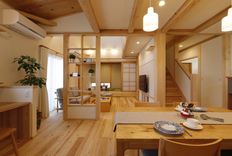 無垢の木の肌触りや香り、広がりを感じる空間デザイン、手づくりの造付家具や建具など、
