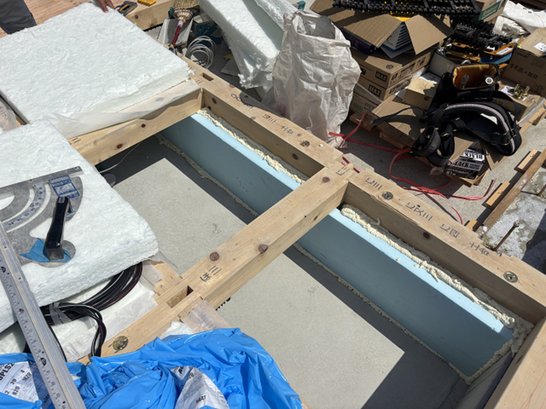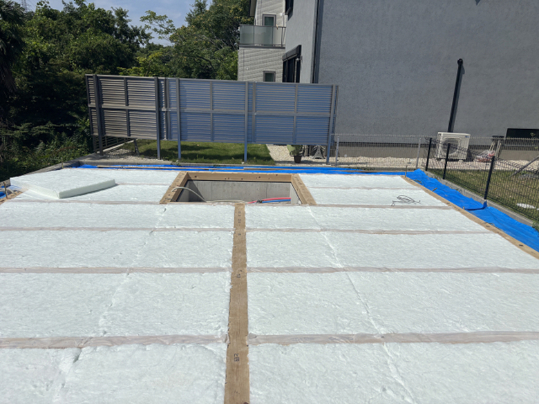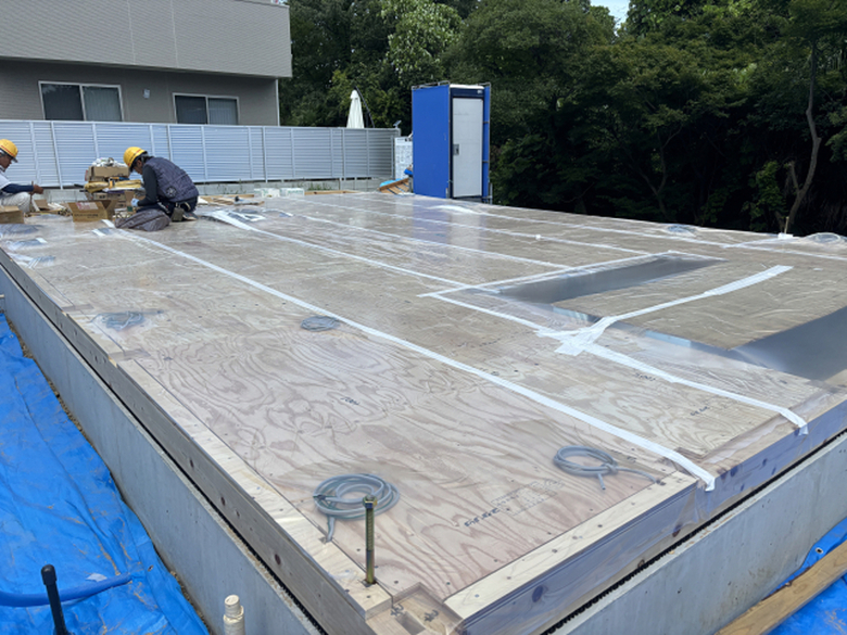 作業性を優先して建て方に先行して敷き込むようにしました。