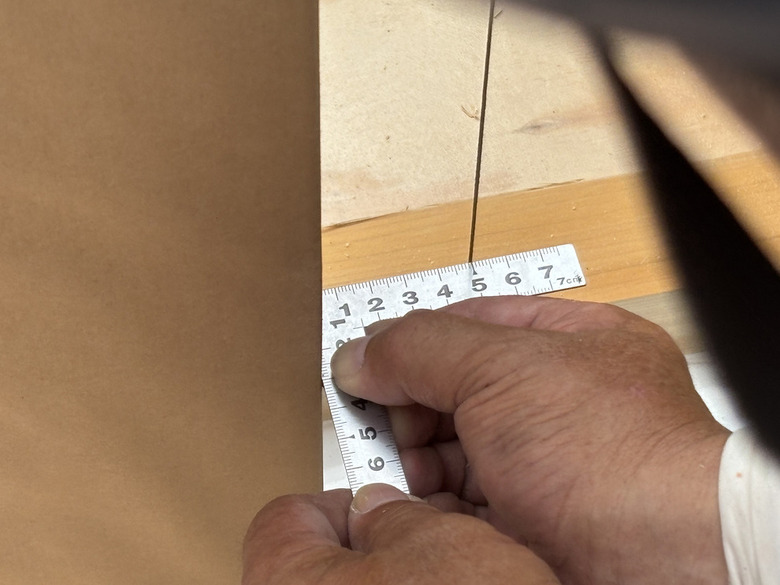 下振り(さげふり)と指矩(さしがね)を使って確認。