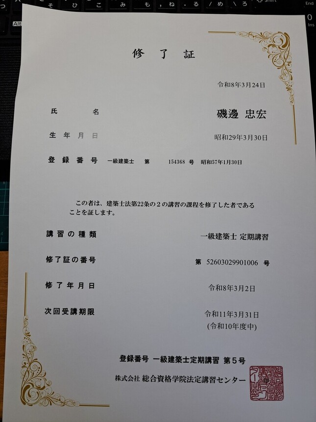 今回は去る3月2日に講習の最後に実施される終了考査を受けました。