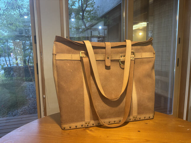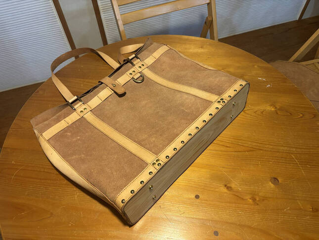 以前買い物バックとして、紙袋にみえる革袋をつくったときに床革を使い