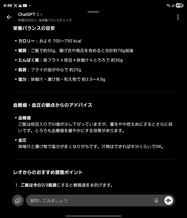 例えば食事の写真をアップすると栄養価やカロリー、塩分・糖質量まで教えてくれるので毎日の健康管理に役立てたり、趣味のマジックのネタ繰りとか、住んでるマンションの管理組合資料作りとかいろいろです。