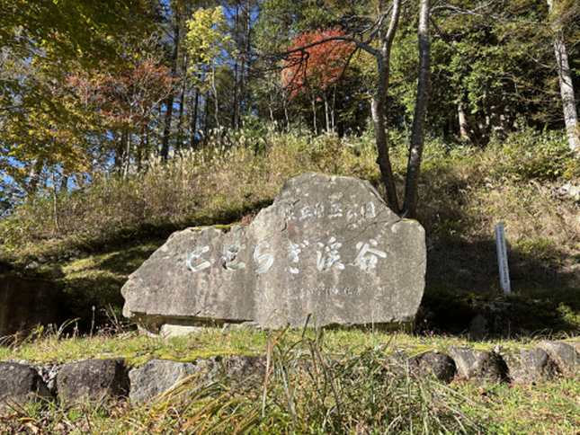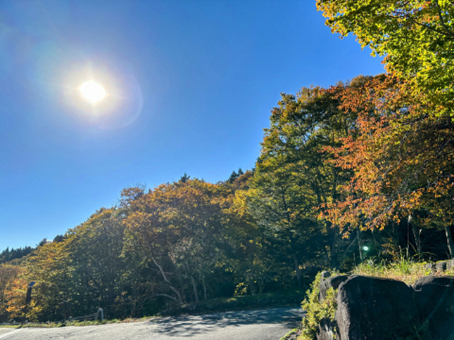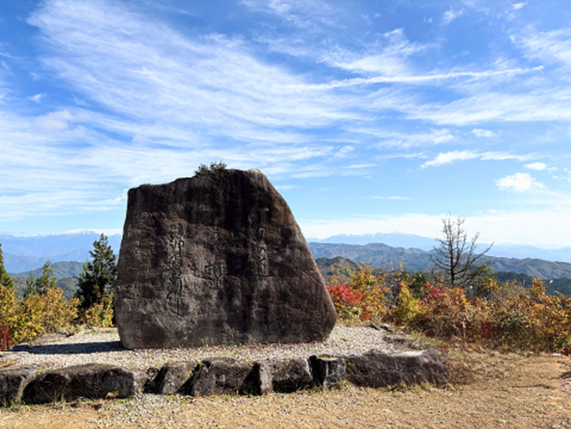 その帰り道、紅葉の色づき前でしたがせせらぎ街道を通り、【西ウレ峠】にある石碑を