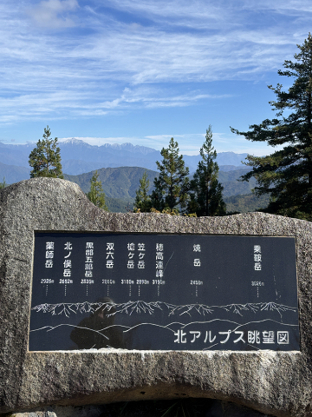 峠には東屋と展望台があり、御嶽山や乗鞍岳がよく見えました。