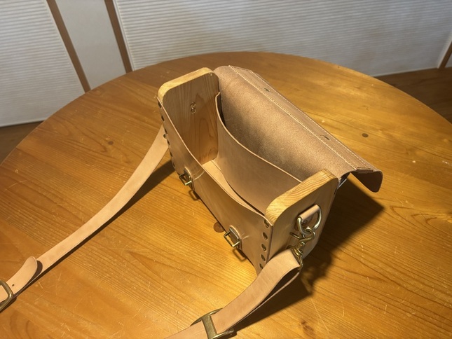 差込金具の受けの取り付けに革を2枚貼りにしたのですが
