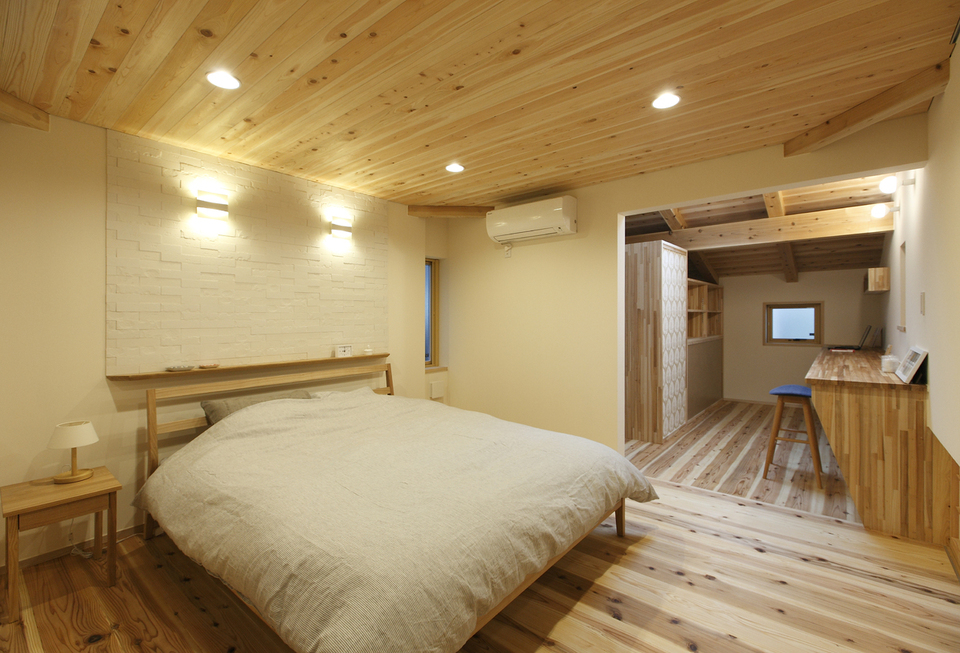 木の香りに包まれて眠る寝室。