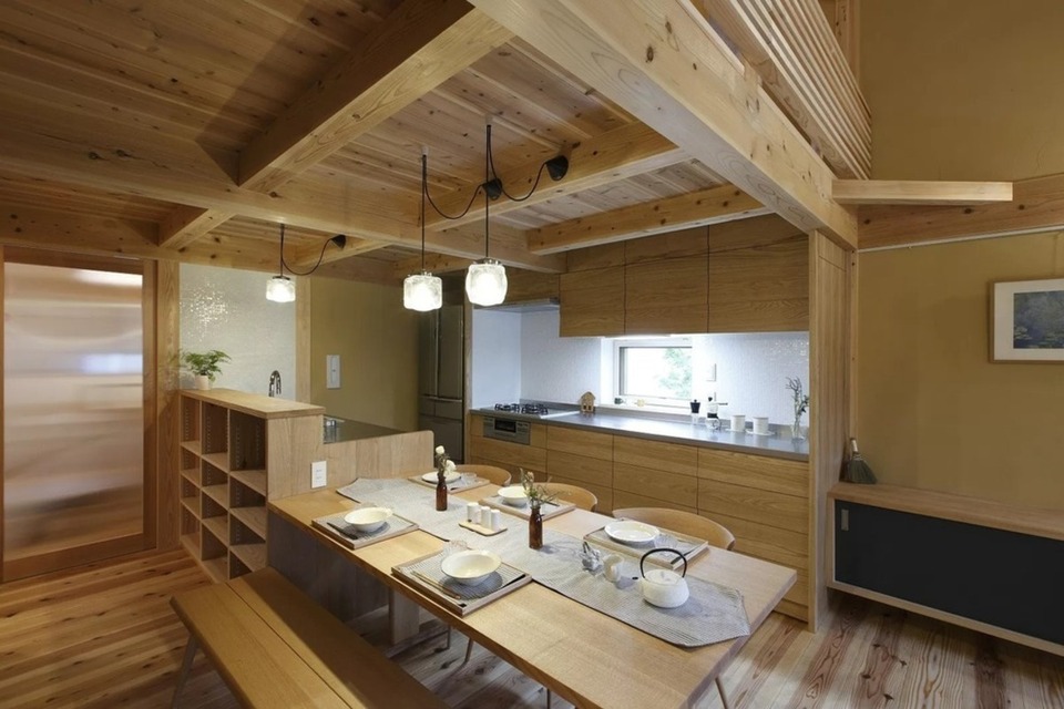 無垢の木の肌触りや香り、広がりを感じる空間デザイン、手づくりの造付家具や建具など、