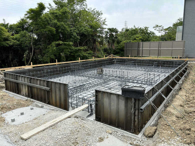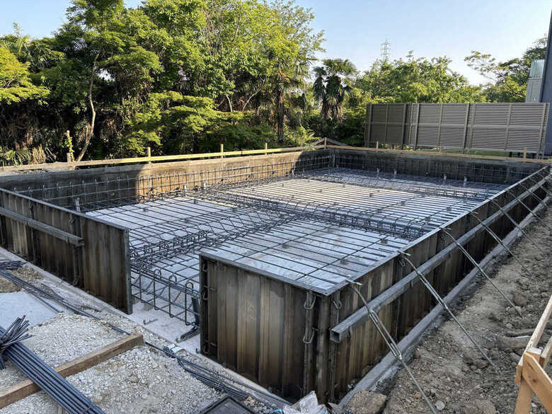 外周部の立ち上がり筋、ベース筋、地中梁筋を配筋。