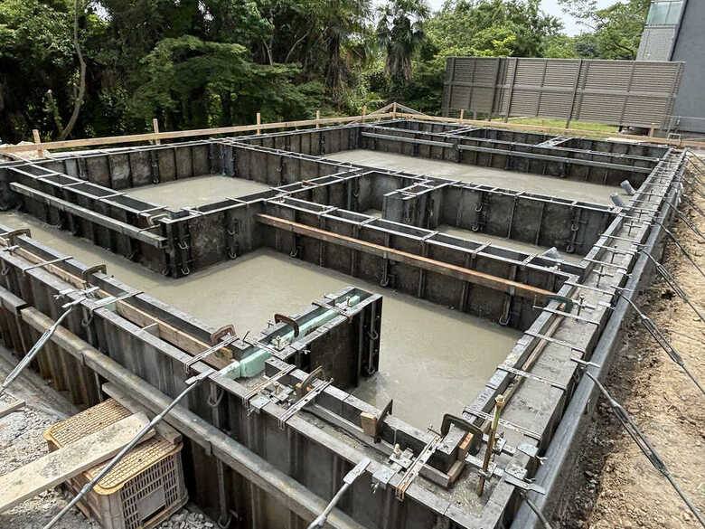 ベースと立ち上がりを同時に打設する“一体打ち工法”