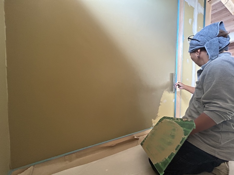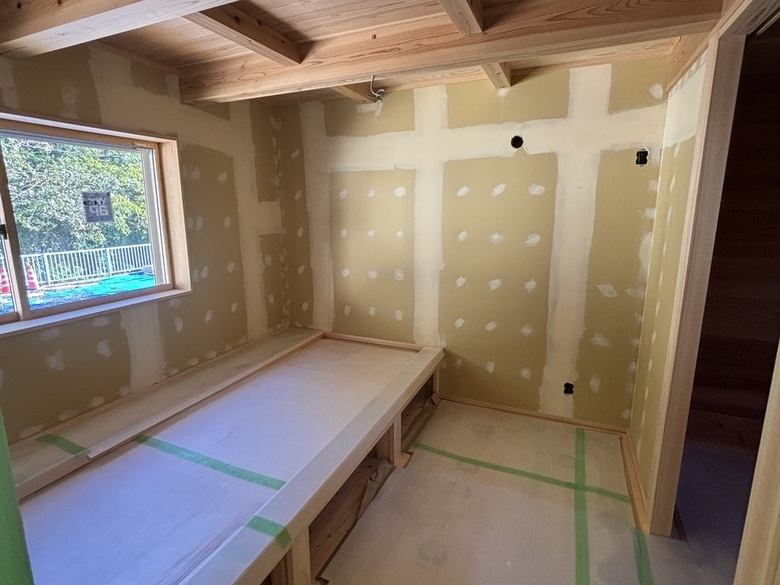 ビス穴や石膏ボードの継ぎ目を丁寧に埋め、