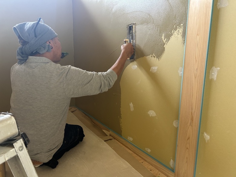 今回の工事では クロス(壁紙) と 左官材 がメイン。
