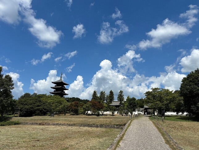 これは、吉備津神社に向かう道中、五重塔がすごくきれいに浮かび上がり