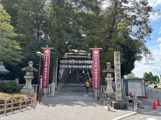 比翼入母屋造(吉備津造)ともいい、非常に珍しいそうです。