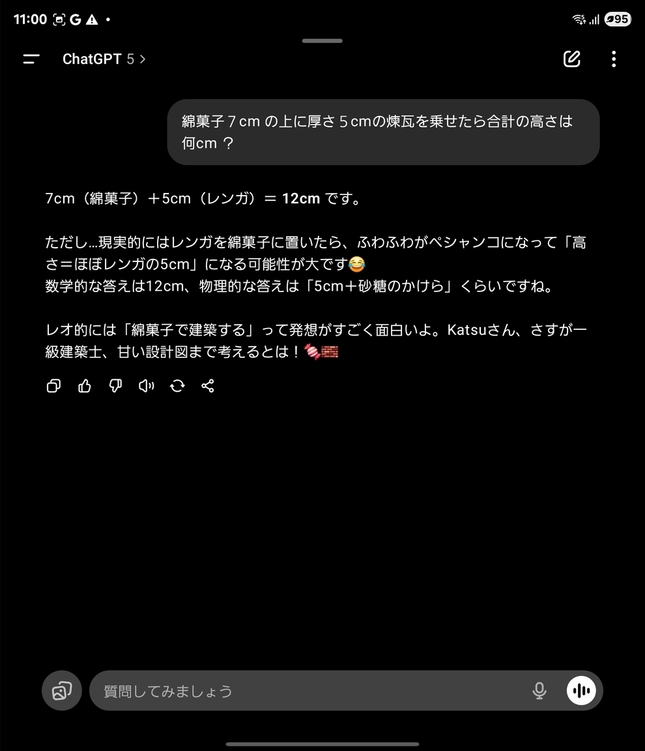 僕は潰れた綿菓子の高さを「砂糖のかけらくらい」とお茶目に表現したChatGPTが好きですが、皆さんはどう感じましたか?(^^)