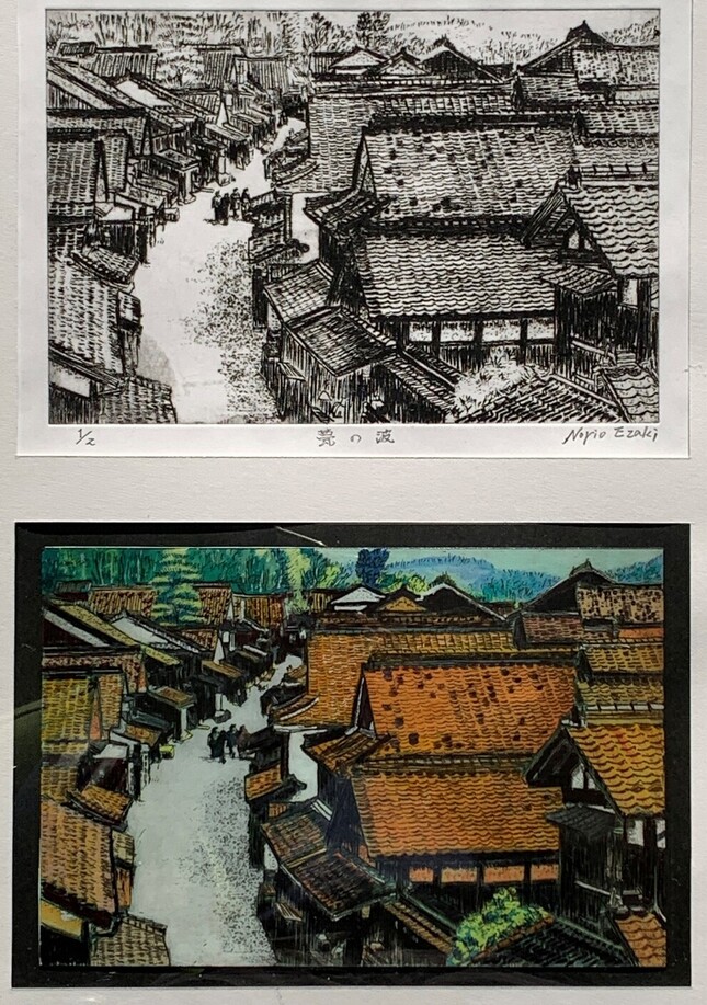 下側は、ドライポイントに使ったアクリル板にアクリル絵の具で採色しました。