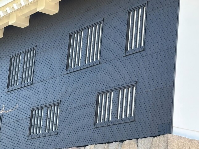 これは、鉄板張りです。立地上北側が弱点で燃えにくくなっているとの事。