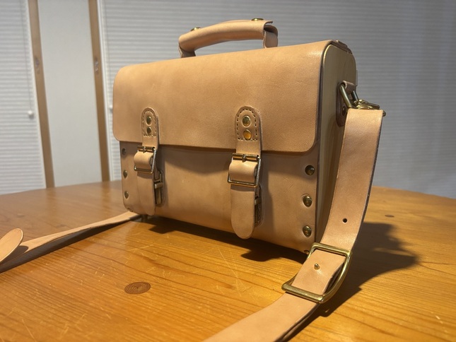 生地のサドルレザー2㎜厚で、ストラップも含む全ての部品を